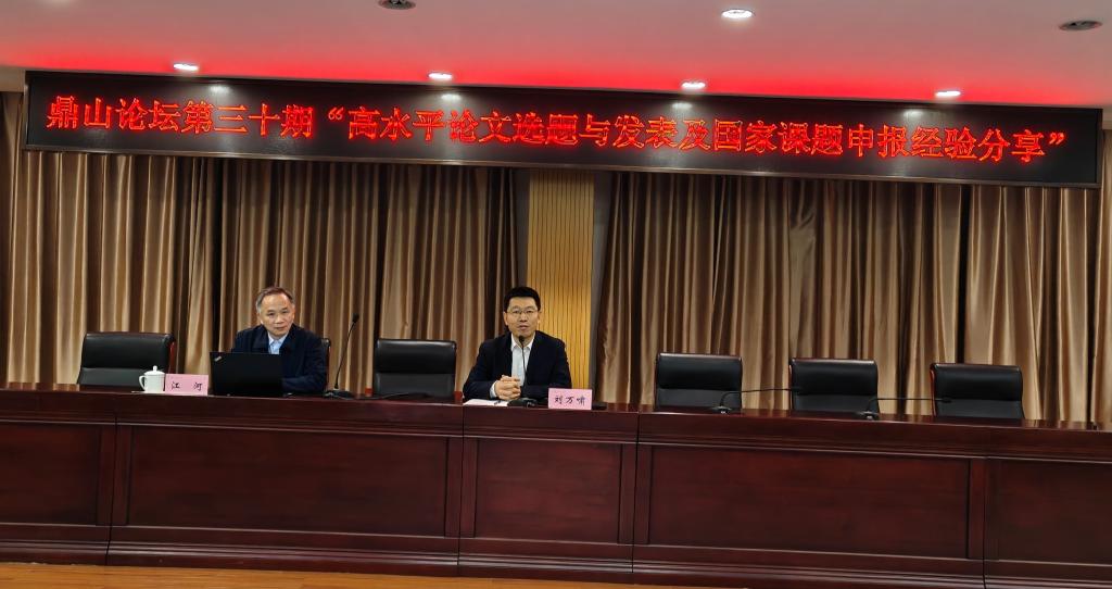 11月15日晚,鼎山论坛第30期“高水平论文选题与发表及国家课题申报经验分享”在鼎山楼第一会议室举行。本次讲座特邀中南财经政法大学二级教授、博士生导师、国际法治和国家安全研究所所长江河教授讲授高水平法学学术论文写作与发表及国家级课题申报的经验与方法。江河教授是教育部哲学社会科学研究重大课题攻关项目首席专家,湖北省十大中青年法学家,湖北省有突出贡献中青年专家,中国太平洋学会自然资源法研究分会副会长,湖北省法学会国际法研究会副会长,在《法商研究》《政法论坛》《法学》等权威核心期刊上发表学术论文几十篇,在中国社会科学出版社、中国政法大学出版社等知名出版社出版学术著作5部。讲座由涉外法治学院、涉外法治研究院、经济贸易法学院共同举办,经济贸易法学院院长刘万啸教授主持,学校科研骨干和部分研究生参加。