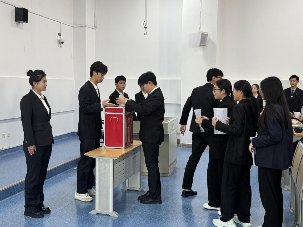 由经济贸易法学院学生会第十八届执行主席刘力铭宣读第十九届学生会候选人名单,本着公平公正公开的原则,采用无记名投票和差额选举方式,经民主投票选举产生了经济贸易法学院第十九届学生会成员及主席团人选。