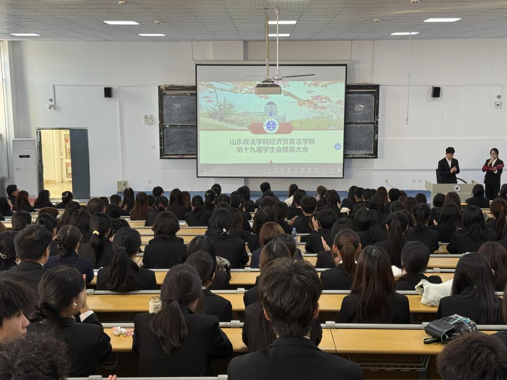 经济贸易法学院第五次学生代表大会暨第十九届学生会换届仪式圆满完成各项议程。新一届学生会将以此为起点,肩负起新的青春使命,为推动学院学生工作再上新台阶而不懈奋斗。