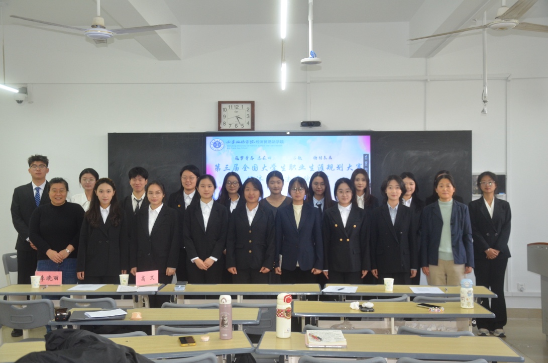 为引导学生树立科学的职业发展理念,提升职业规划能力与综合素养,11月28日,经济贸易法学院成功举办第三届大学生职业规划大赛院内选拔赛。学院党委副书记王晓瑜,团委书记王龙,辅导员高文、赵一平、李晓丽担任评委,各年级学生代表到场观摩学习。