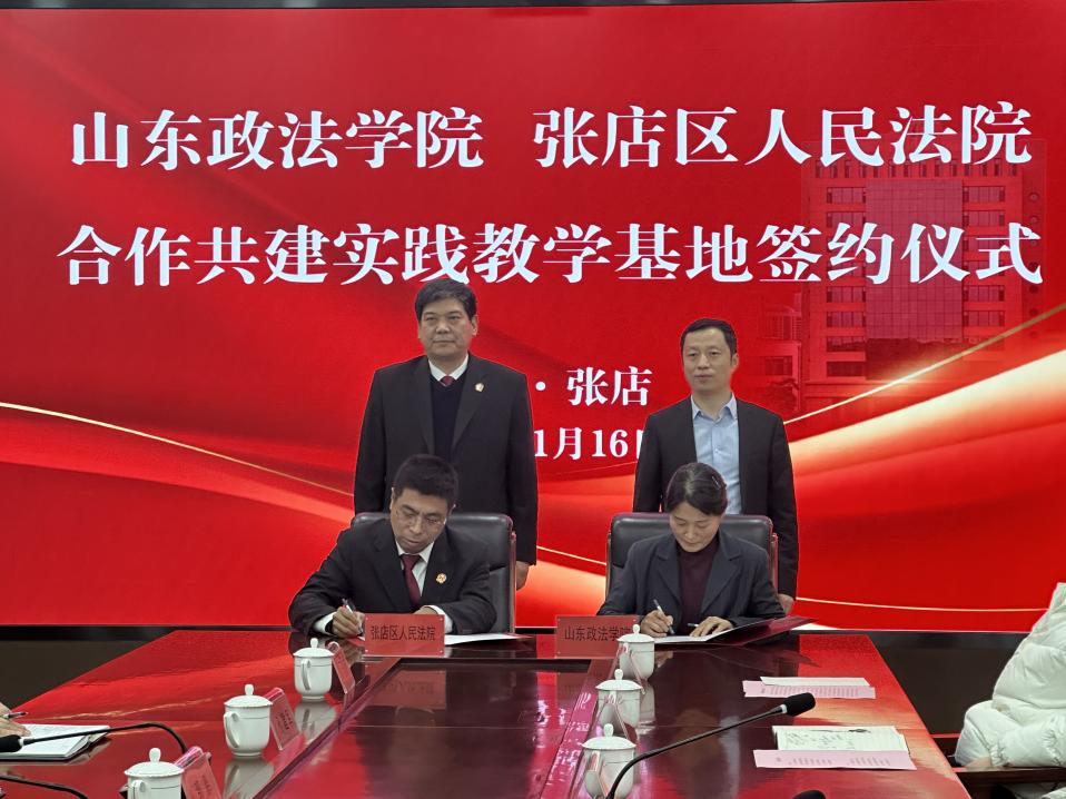 为深化法学教育与司法实践融合,培养高素质应用型法治人才,近日,经济贸易学院与张店区人民法院举行实践教学基地签约仪式。张店区人民法院党组书记、院长任永,党组副书记、副院长郭鹏,经济贸易学院党委书记于万涛,党委副书记王晓瑜等双方代表出席活动。