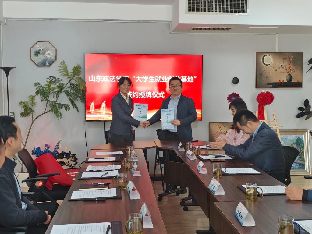 会后,双方共同签署《山东政法学院就业创业基地建设协议书》并为就业创业基地揭牌。